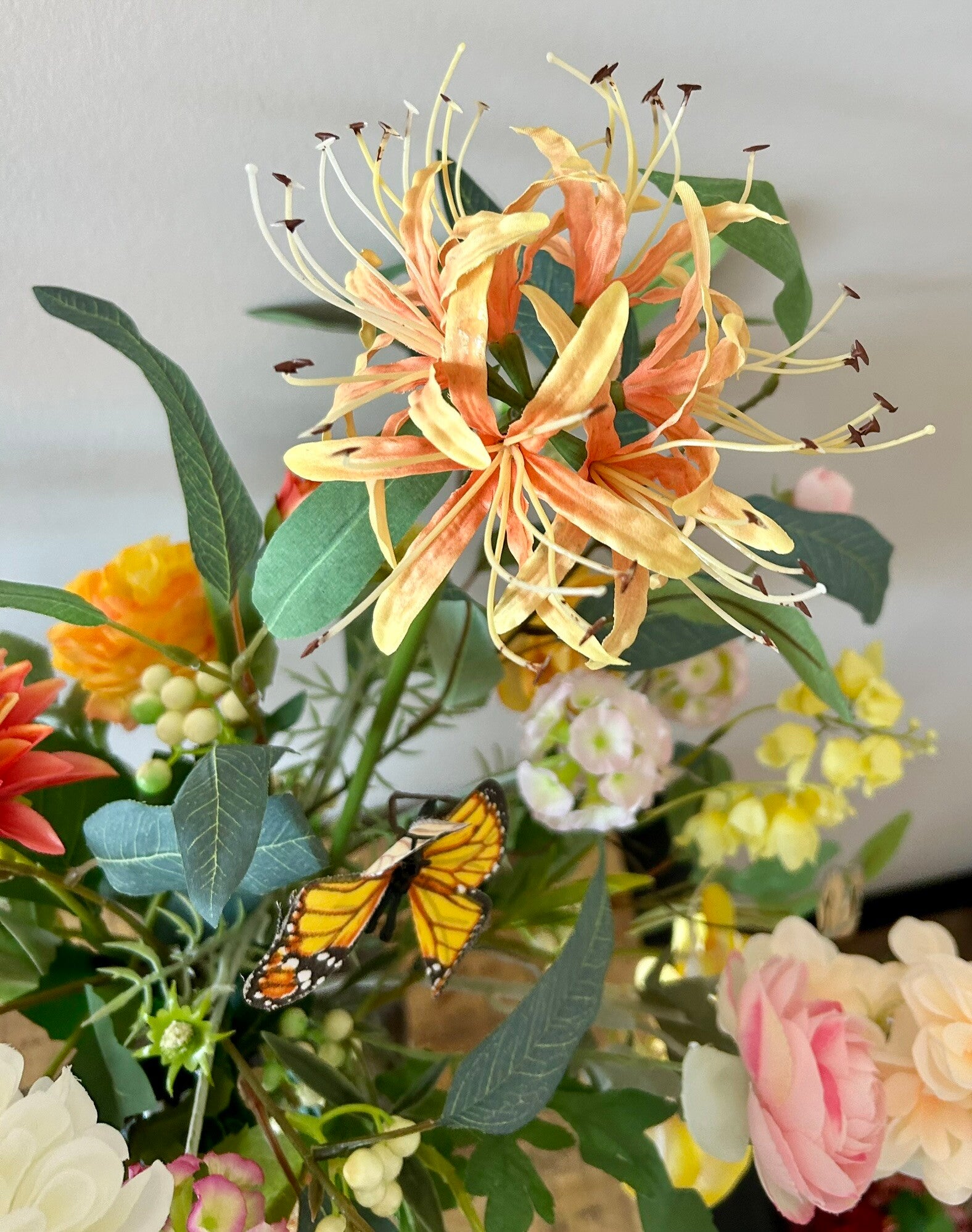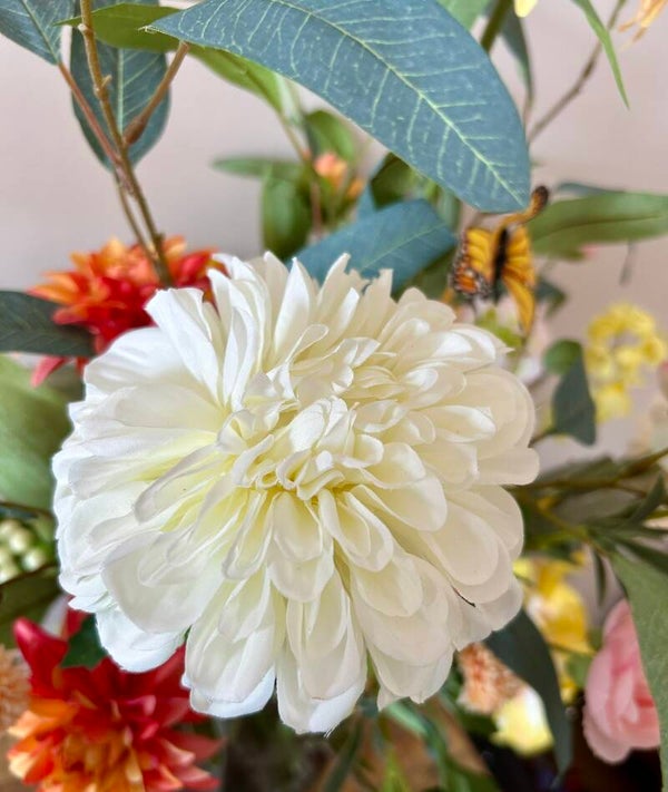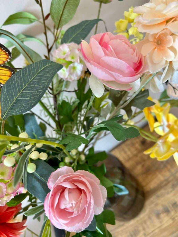 Dit is een boeket waar je je ogen niet van af kan houden! Met de prachtige rustige kleuren en de speelse vlinder tak is dit echt een bijzondere bos met bloemen.